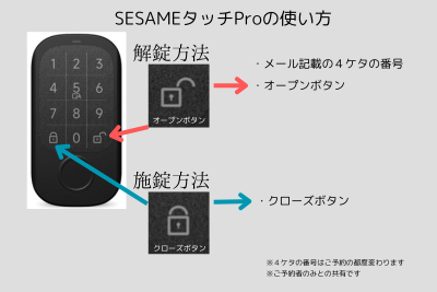 スタジオクローバーではセサミ5とセサミタッチProを使用して、毎回4ケタの解錠番号をお伝えして、予約ナンバーごとの管理をしております。